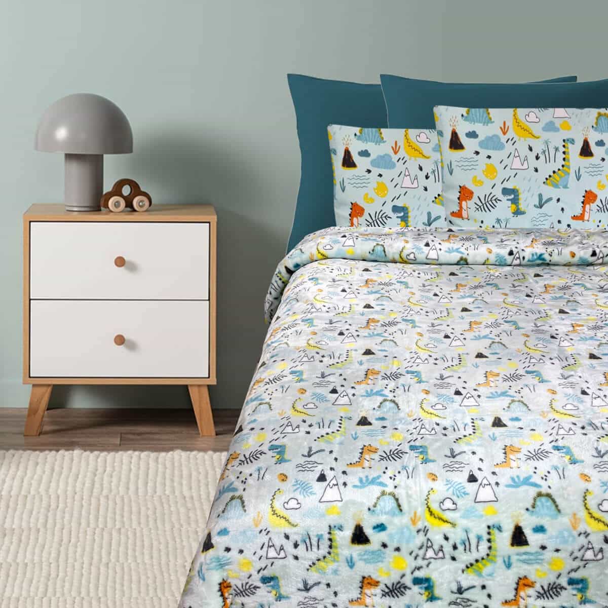 Η παιδική κουβέρτα βελουτέ “Dino” είναι μια χαρούμενη και ζεστή κουβέρτα σχεδιασμένη ειδικά για παιδικά δωμάτια.